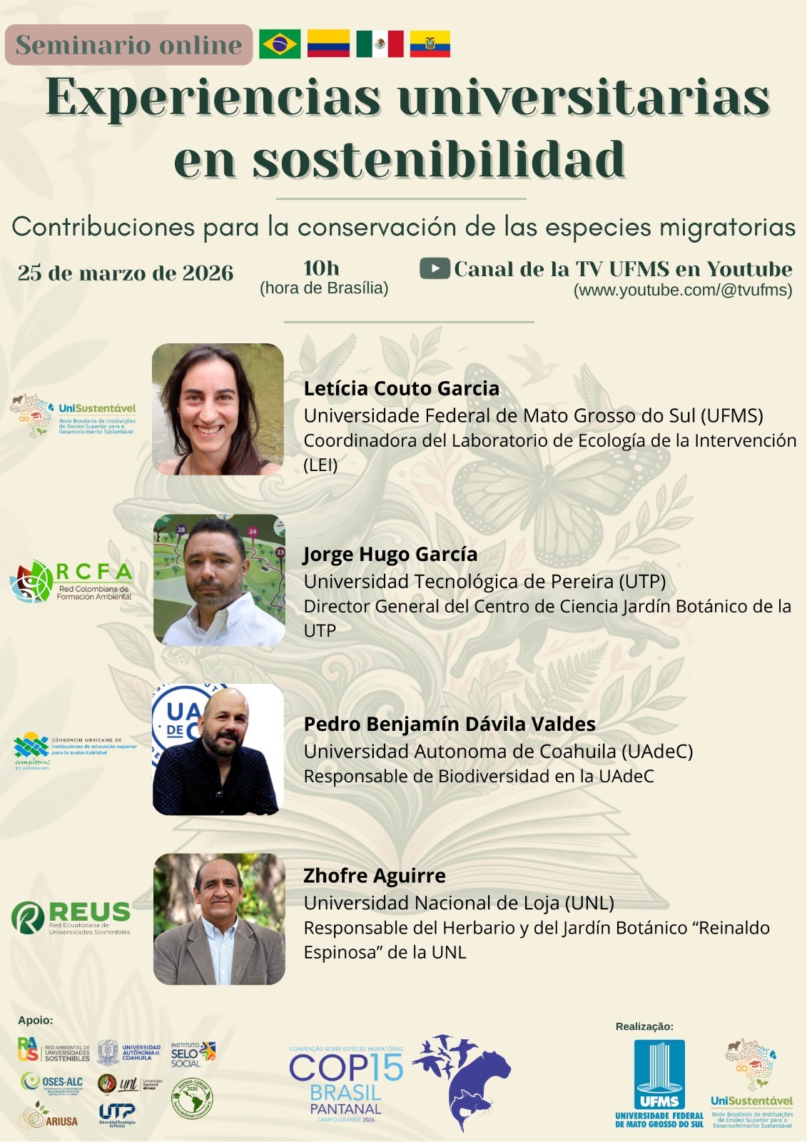 La Universidad Autónoma de Coahuila participará el 25 de marzo de 2026 en el Seminario en Línea “Experiencias universitarias en sostenibilidad. Contribuciones para la conservación de las especies migratorias”, un espacio de diálogo académico que reúne a instituciones de educación...