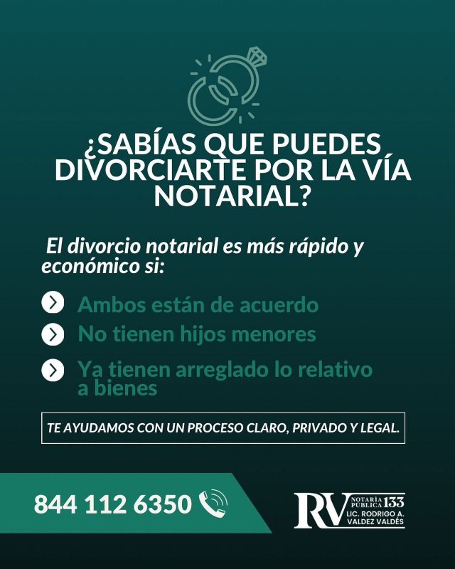 Cuando una etapa llega a su fin, también puede cerrarse con serenidad y respaldo legal. En Notaría Pública 133, encabezada por el Lic. Rodrigo A. Valdez Valdés, se ofrece el divorcio por mutuo consentimiento mediante la vía notarial, un proceso ágil, económico y totalmente confidencial.
