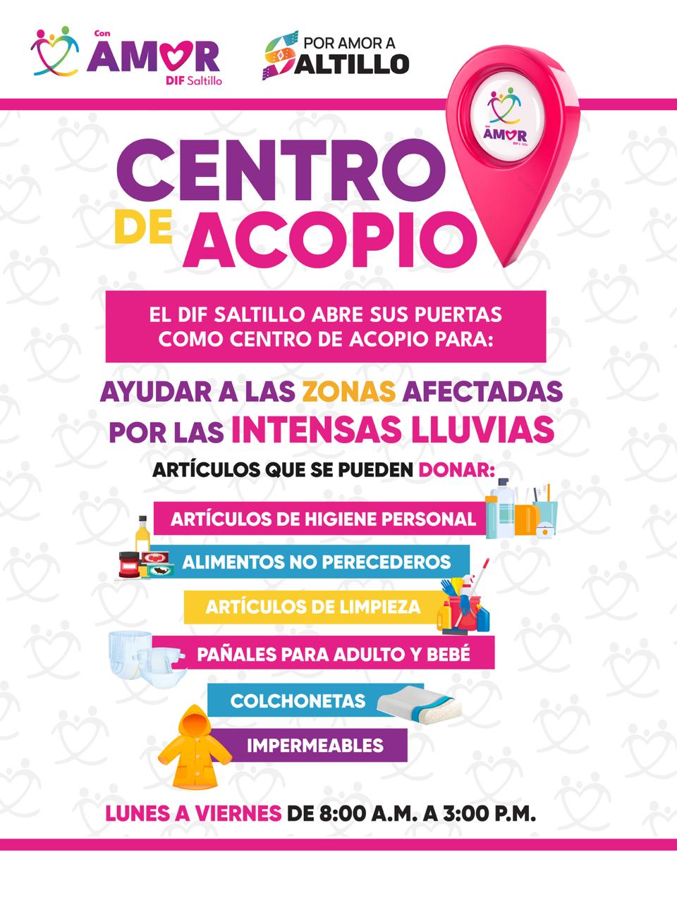 Abre DIF Saltillo centro de acopio para ayudar a zonas afectadas por lluvias