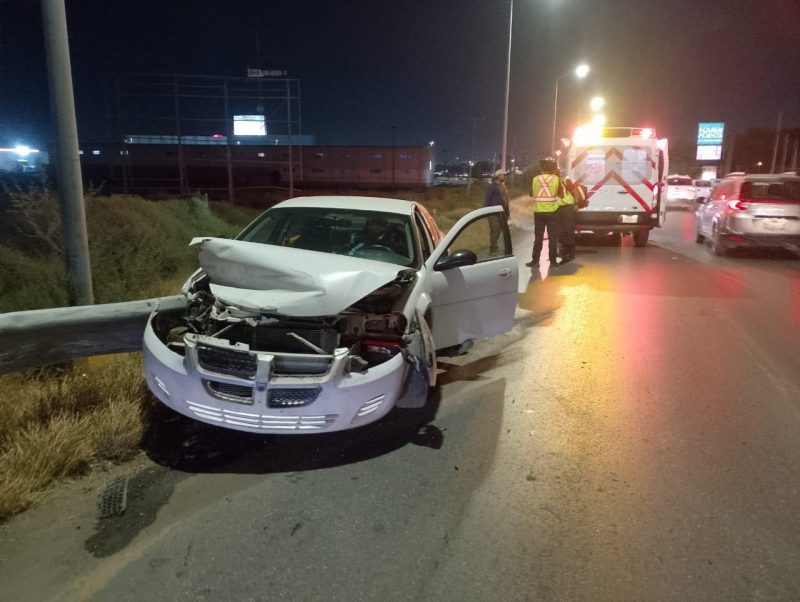 La noche de este viernes, un Dodge Stratus conducido por Gerardo «N» chocó contra una barrera metálica tras presuntamente ser cerrado por otro automovilista en el cruce con el bulevar General Motors, entre Saltillo y Ramos Arizpe.