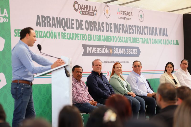 En Arteaga, Coahuila, este 18 de julio iniciaron las obras de modernización vial en el Libramiento Óscar Flores Tapia y el acceso al Camino a Loma Alta, las cuales incluyen semaforización inteligente y carpeta asfáltica.