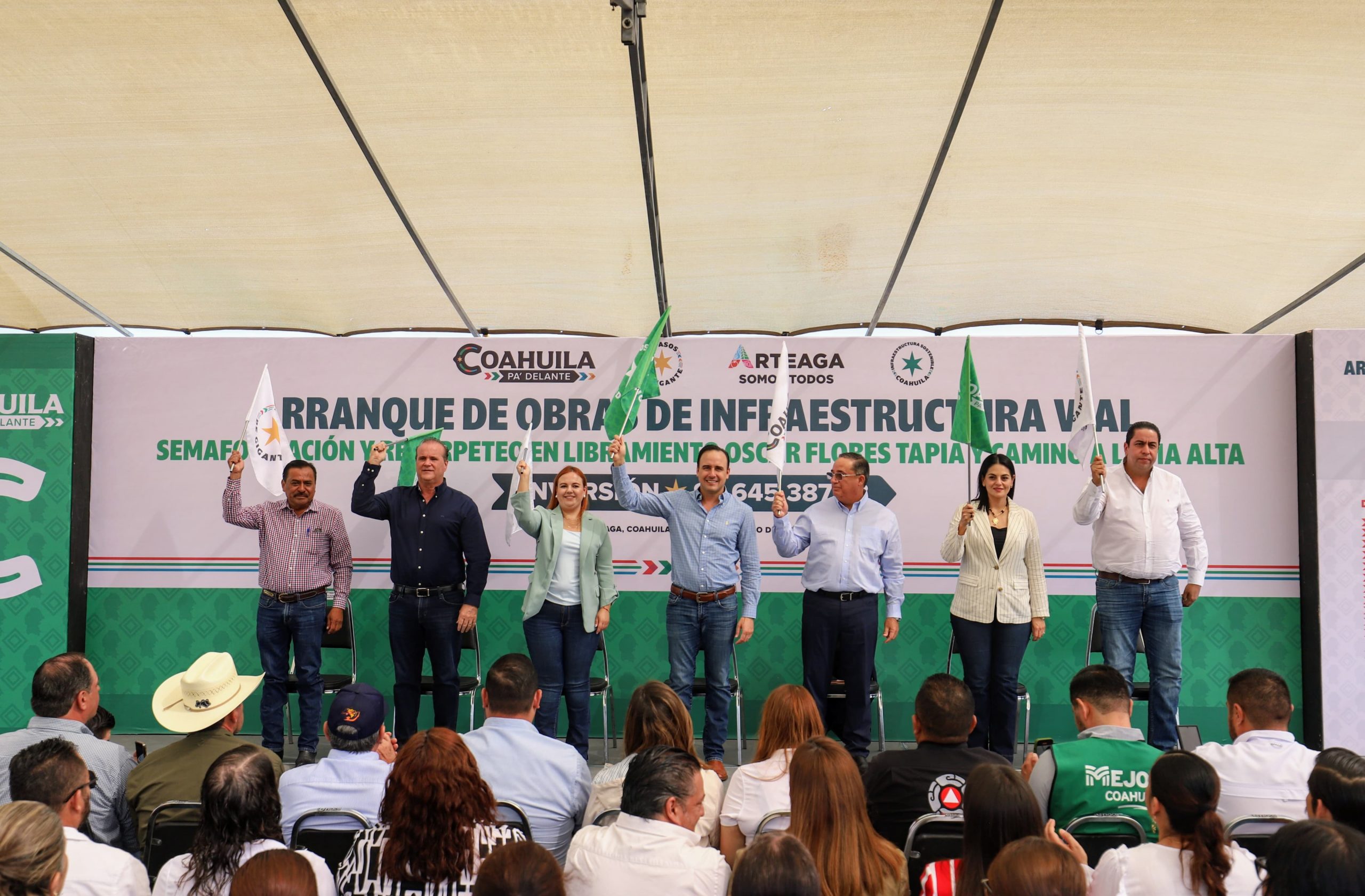 En Arteaga, Coahuila, este 18 de julio iniciaron las obras de modernización vial en el Libramiento Óscar Flores Tapia y el acceso al Camino a Loma Alta, las cuales incluyen semaforización inteligente y carpeta asfáltica.