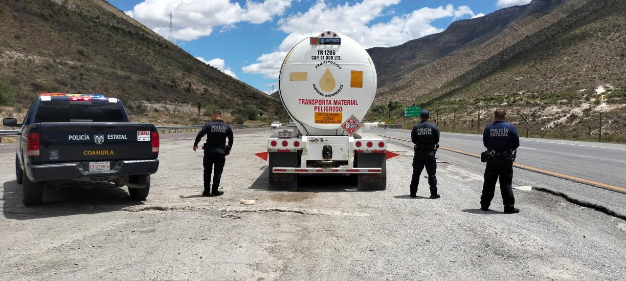 Este miércoles, elementos de la Policía de Coahuila lograron asegurar un tractocamión con dos tanques donde transportaban diésel de dudosa procedencia.