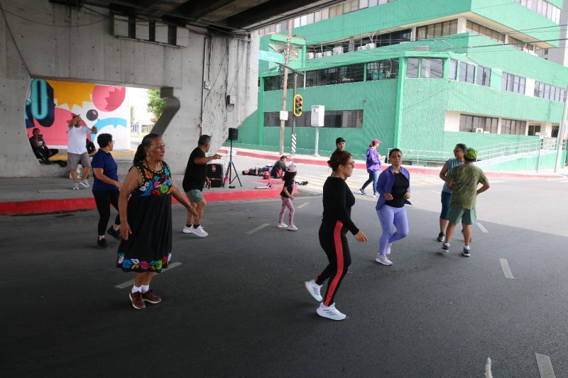 Debajo del puente de Venustiano Carranza y periférico Luis Echeverría se impartió una clase de ritmos musicalizados, con el fin de promover la activación física entre la población, la cual fue bien recibida.