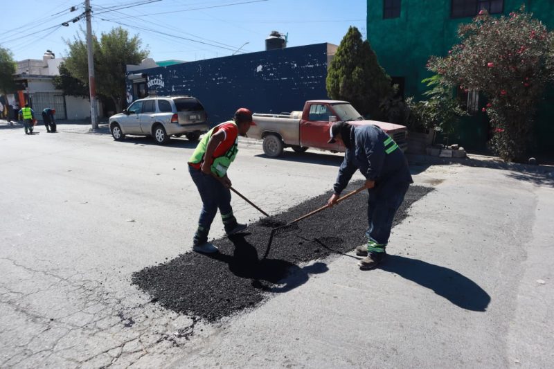Estos trabajos constaron de limpieza y retiro del pavimento dañado, así como relleno de los baches con asfalto caliente y su posterior nivelación para garantizar una mejor movilidad en el sector poniente de Saltillo.