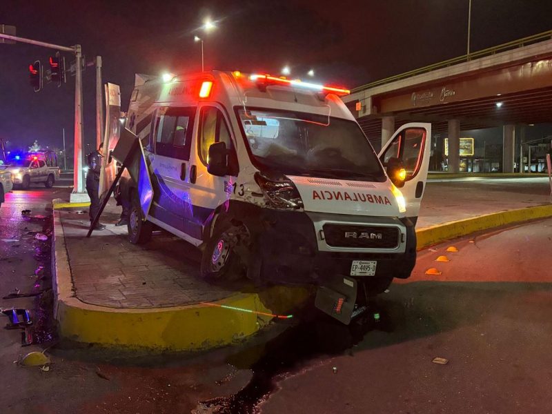 De acuerdo con los primeros reportes, la ambulancia, perteneciente a la empresa Stellantis, circulaba con la sirena encendida mientras trasladaba a una paciente. Sin embargo, al llegar al cruce referido, el conductor de la camioneta impactó el costado derecho de la unidad médica, proyectándola contra el camellón central, donde derribó un señalamiento metálico.