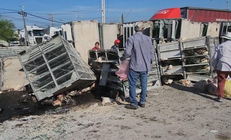 La mañana del martes se registró un accidente en Ramos Arizpe cuando un tráiler, cargado con alrededor de 2,500 aves, volcó al tomar a alta velocidad una curva en la conexión entre el bulevar Miguel Ramos Arizpe y el libramiento Óscar Flores Tapia. El conductor, que se dirigía del municipio de El Porvenir al Estado de México, salió ileso y decidió permanecer en el lugar para esperar a su aseguradora, así como a otra unidad que pudiera hacerse cargo de la carga.