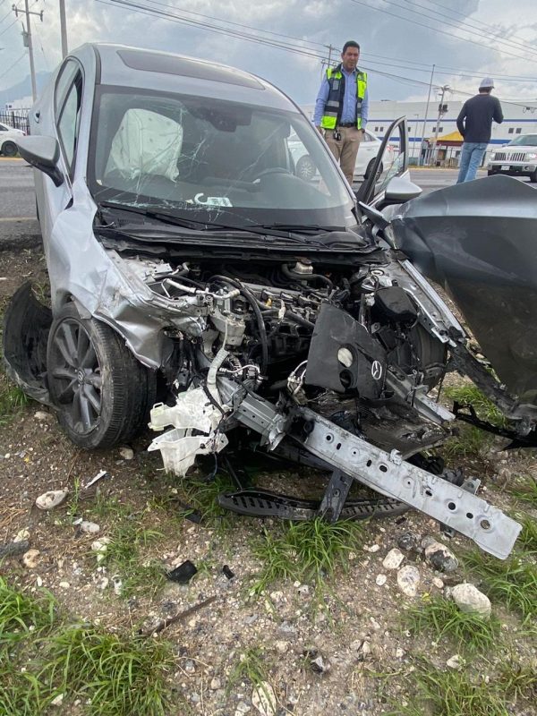 De acuerdo con los primeros reportes, la conductora de un vehículo compacto intentó realizar un retorno en la zona sin percatarse de la proximidad de una camioneta tipo Pick Up, lo que provocó una fuerte colisión entre ambas unidades.