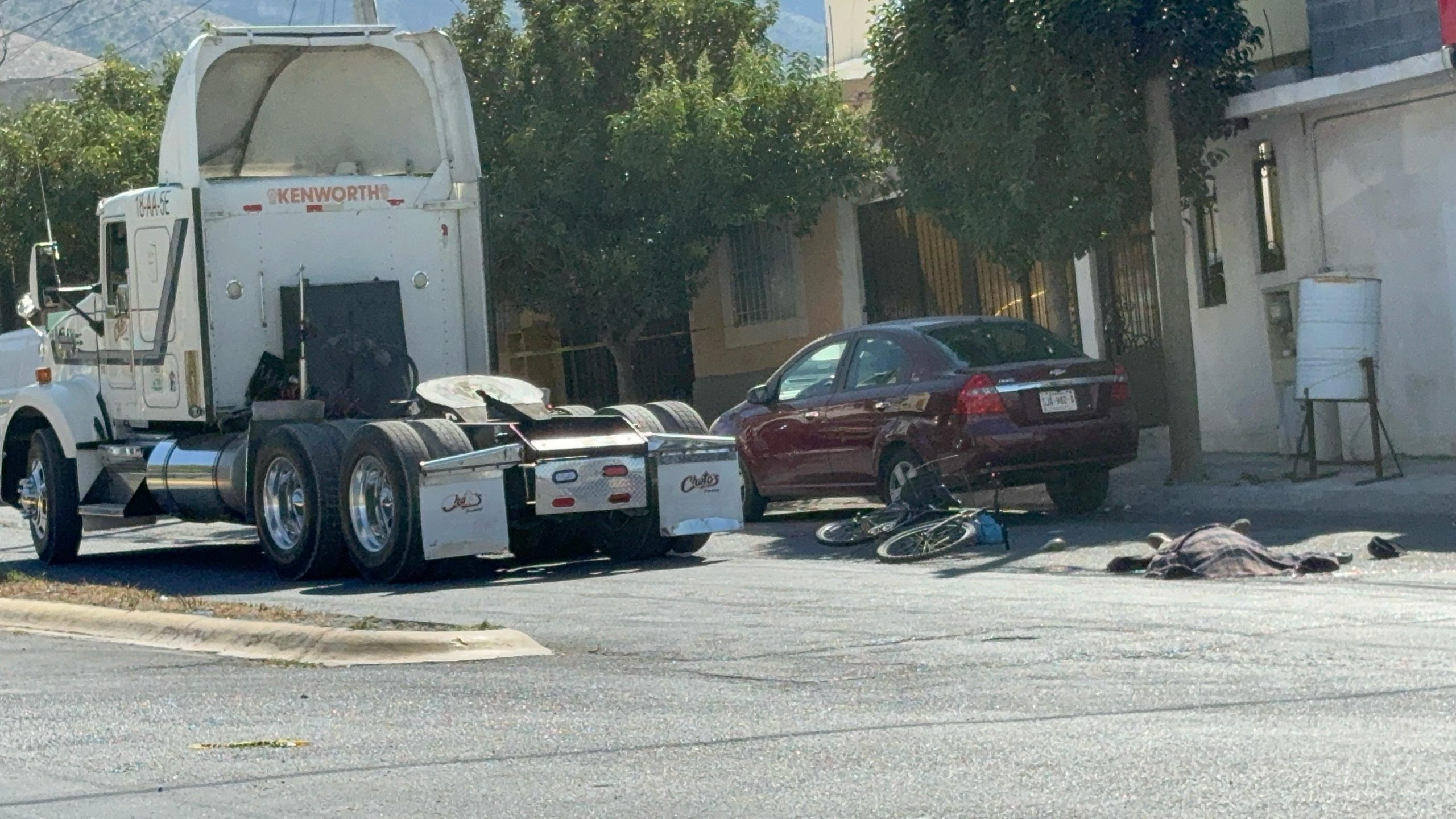 Paramédicos de Cruz Roja Saltillo confirmaron el deceso del ciclista que ya no contaba con signos vitales.