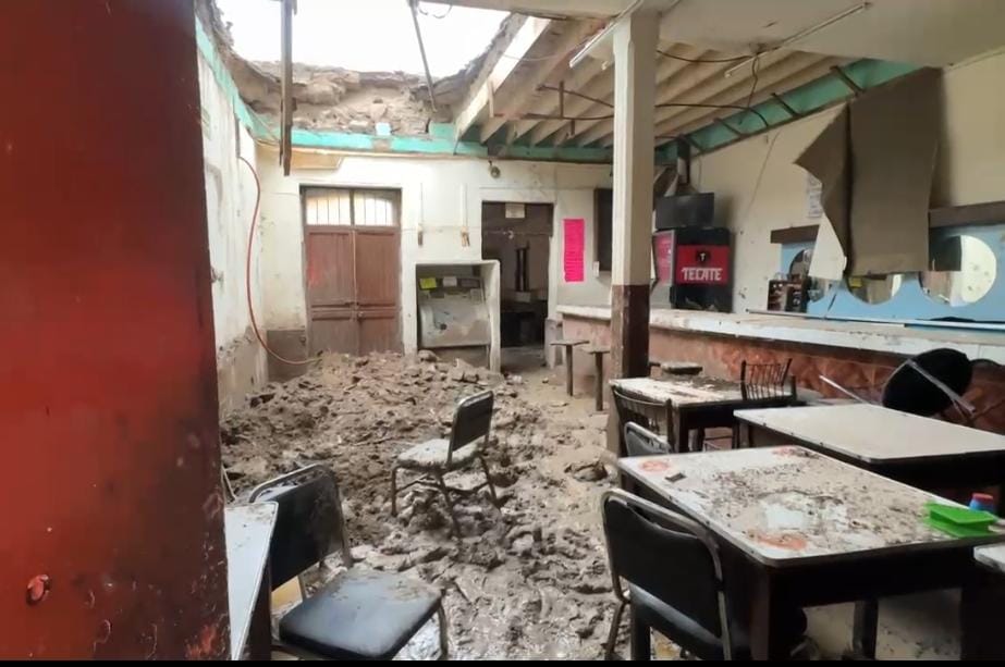 La tarde de este martes 15 de julio, las fuertes precipitaciones que han afectado a Saltillo provocaron un nuevo incidente, esta vez en un bar con años de antigüedad ubicado sobre la calle Acuña, en pleno centro de la ciudad. El inmueble, construido con materiales tradicionales como el adobe, no soportó la humedad y una parte del techo se vino abajo de forma repentina.