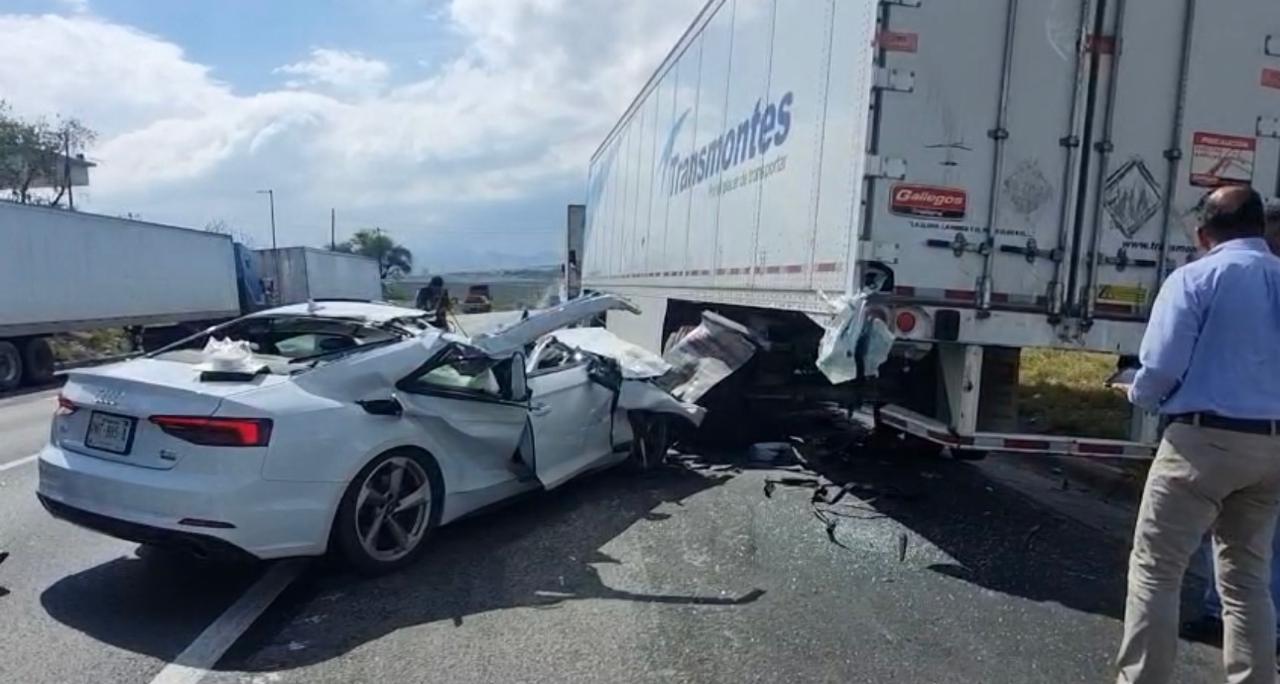 De acuerdo con autoridades que atendieron el reporte, el auto deportivo salió de la cinta asfáltica y terminó estrellándose de lleno contra un transporte de carga que se encontraba estacionado sobre el acotamiento.