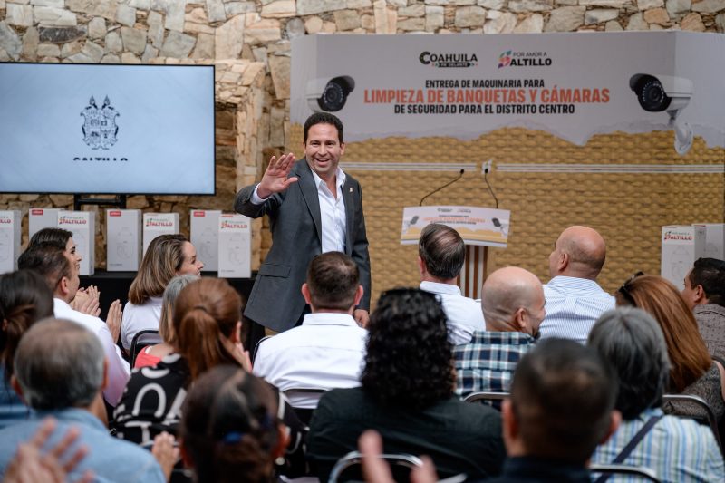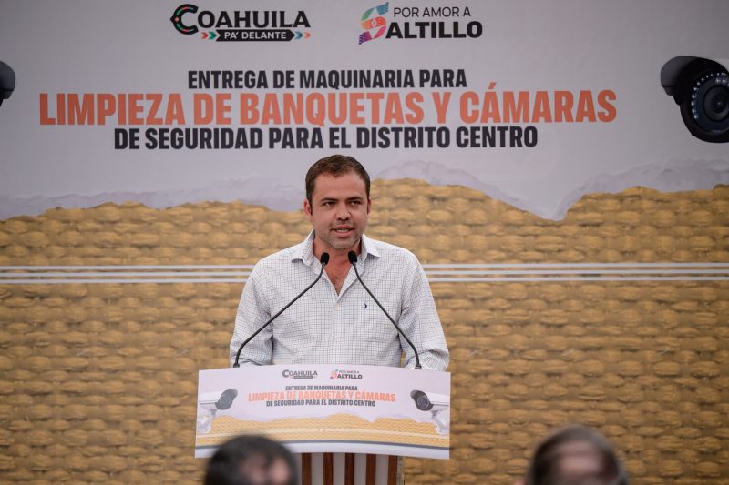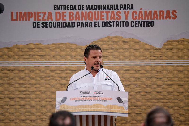 Saltillo, Coahuila de Zaragoza; 07 de agosto de 2025.- Como parte de las acciones para impulsar al Distrito Centro, el alcalde Javier Díaz González, en coordinación con la Asociación de Comerciantes del Centro Histórico de Saltillo, entregó 20 cámaras de reconocimiento facial y una máquina para limpieza profunda de las calles, banquetas y espacios públicos.