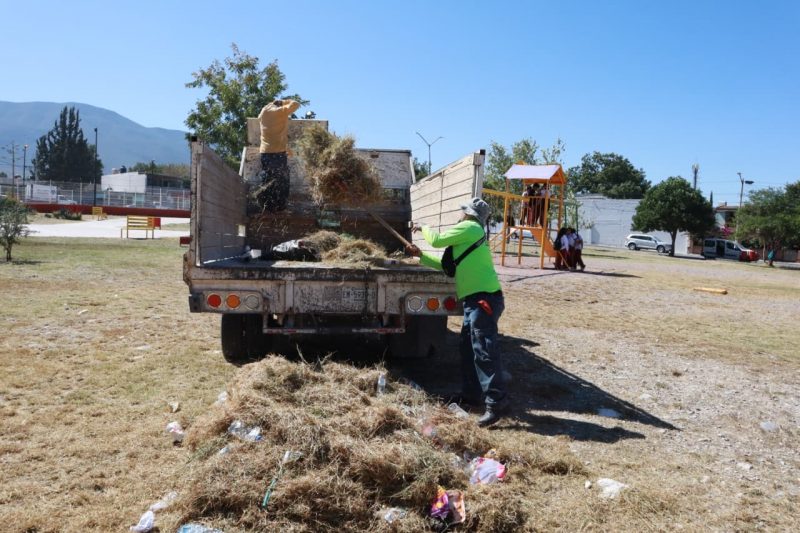 Al oriente de Saltillo, personal municipal atendió el llamado de vecinos de la colonia Ampliación Morelos, para realizar la limpieza general de la plaza pública ubicada entre las calles 15 y 22.