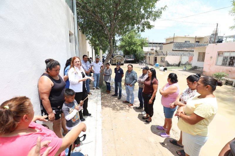 Acudió a la Privada Buenos Aires, una de las zonas con mayor acumulación de agua, en donde se realizan trabajos para succionar el agua estancada.