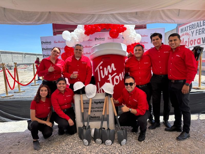 Parras, Coahuila de Zaragoza.– Con una inversión de 12 millones de pesos y la generación de 35 empleos, este miércoles el alcalde Fernando Orozco Lara colocó la primera piedra del nuevo restaurante Tim Hortons, acompañado por Jesús Favila Sandoval, gerente de Operaciones de la franquicia. La cadena canadiense abrirá su sucursal número 138 a nivel nacional y la 21 en el estado de Coahuila, con miras a inaugurarse en septiembre en la Calzada del Marquez, a la altura de la calle Ing. de la O.