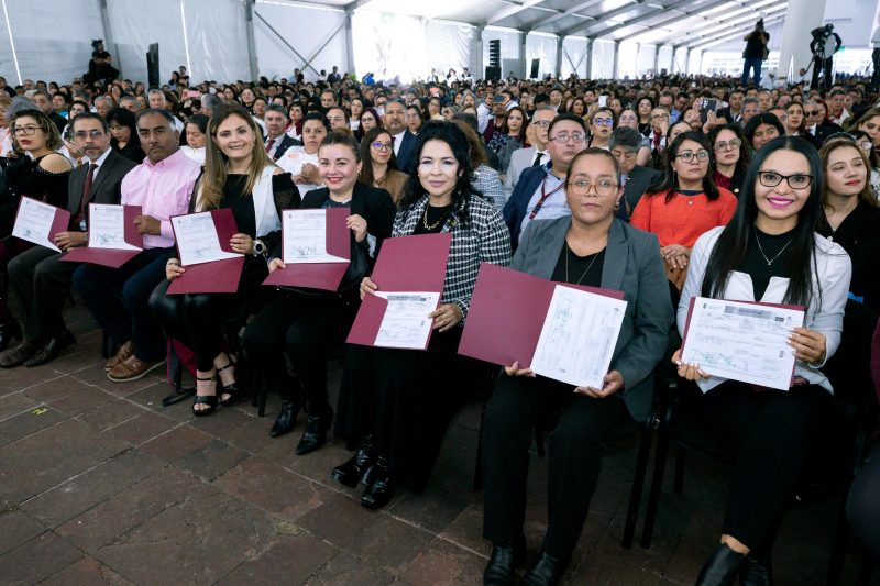 “Nos llena de orgullo y satisfacción otorgar certeza y mejorar las condiciones laborales de 2 mil 651 docentes y mil 859 trabajadores de apoyo y asistencia a la educación”, dijo.