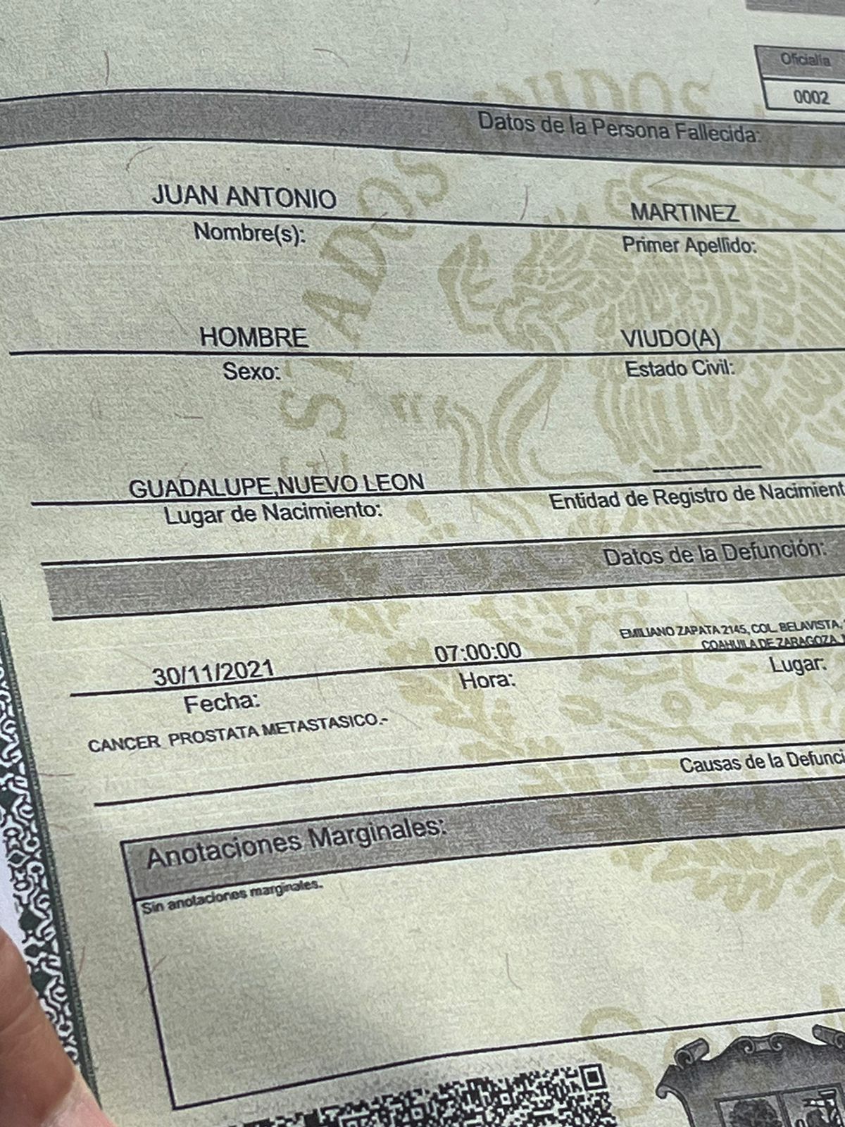 Martínez Oviedo presentó como prueba que el acta de defunción de su hermano está fechada el 30 de noviembre de 2021, mientras que el testamento en disputa fue “corregido y cotejado” el 3 de agosto de 2022, es decir, nueve meses después del fallecimiento. Ante esta irregularidad, cuestionó cómo su hermano pudo solicitar modificaciones a un documento legal cuando ya no estaba con vida. Según relató, Rubén —quien era el encargado de cuidar al hoy occiso— ya había sido señalado previamente por presunto secuestro del paciente durante su convalecencia.