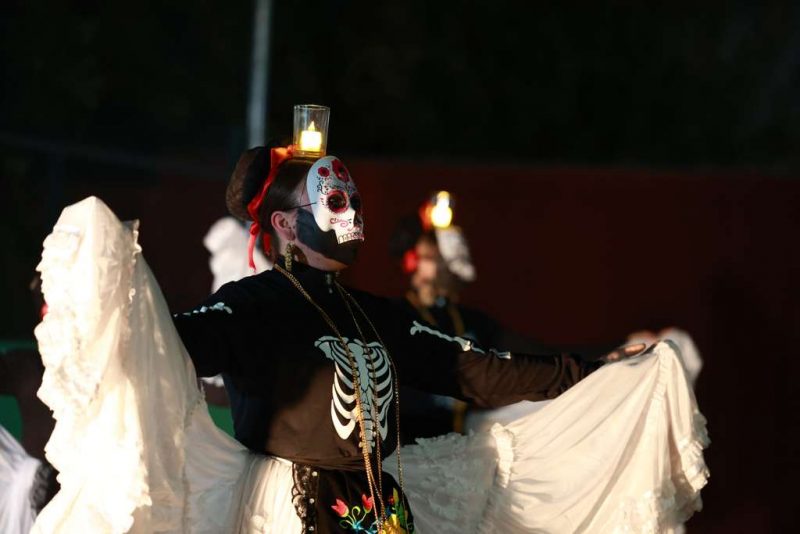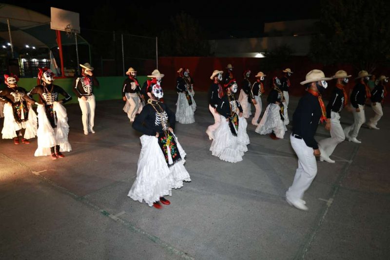 Saltillo, Coahuila de Zaragoza; 23 de octubre de 2025.- El arte y la cultura continúan llegando a todos los rincones de la ciudad y en esta ocasión habitantes del poniente disfrutaron de la presentación de “Historias de vida y muerte” a cargo de la Compañía Folklórica de Saltillo Ixtle-Coahuila.