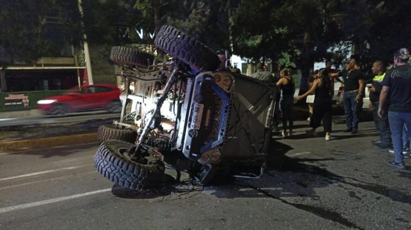 Durante la madrugada de este sábado, Julio César perdió el control de su camioneta Wrangler, impactó a un vehículo estacionado, lo proyectó en contra de un poste de madera y posteriormente la camioneta volcó aparatosamente.