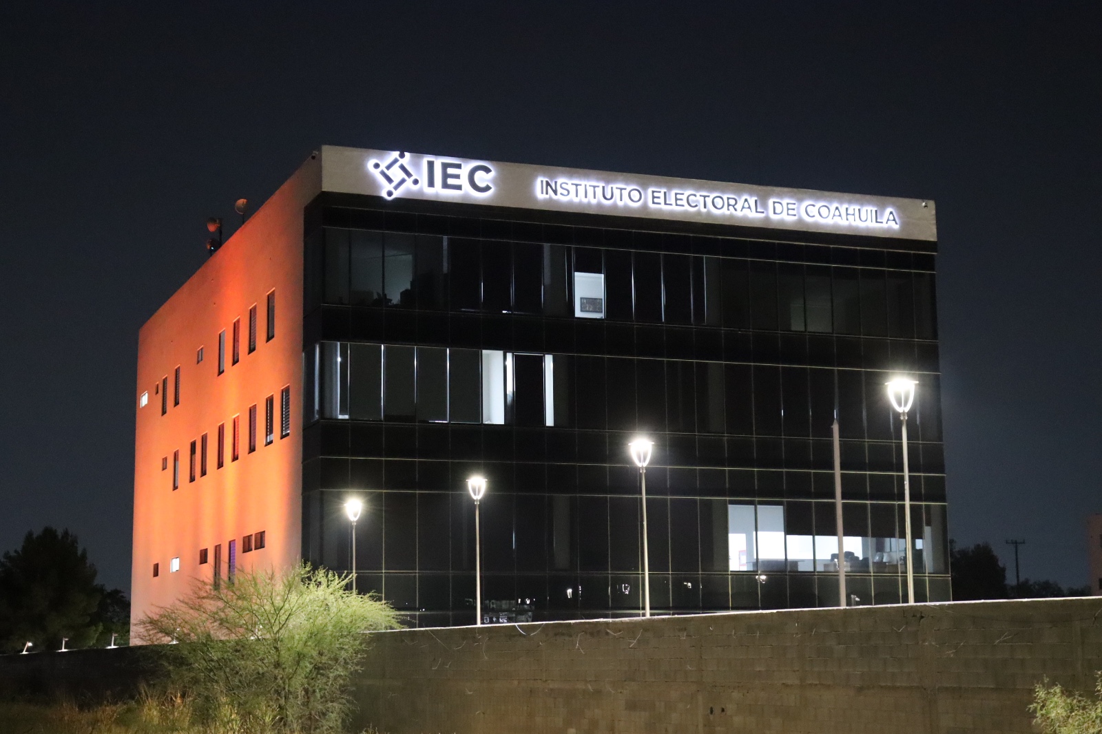 El Instituto Electoral de Coahuila llevó a cabo el iluminado de su edificio en color naranja, acto simbólico para conmemorar el Día Internacional de la Eliminación de la Violencia contra la Mujer.