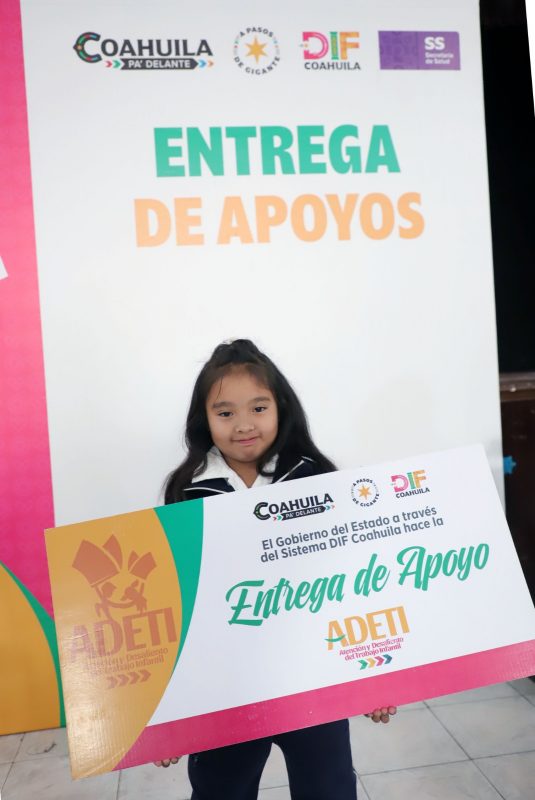 El DIF Coahuila entregó las Becas ADETI, programa que impulsa acciones integrales para prevenir el trabajo infantil y garantizar el desarrollo de la niñez en entornos seguros.