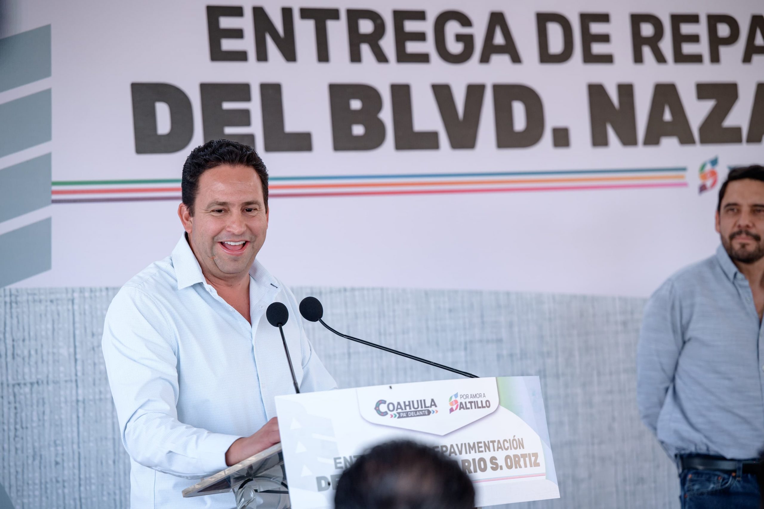 Saltillo, Coahuila de Zaragoza; 16 de junio de 2025.- El alcalde de Saltillo, Javier Díaz González, entregó la obra de repavimentación del bulevar Nazario S. Ortiz Garza, la cual conectará con la ampliación que realiza el Gobierno del Estado en dicha vialidad, llegando hasta el bulevar Alameda Zaragoza de la Colonia Saltillo 2000.