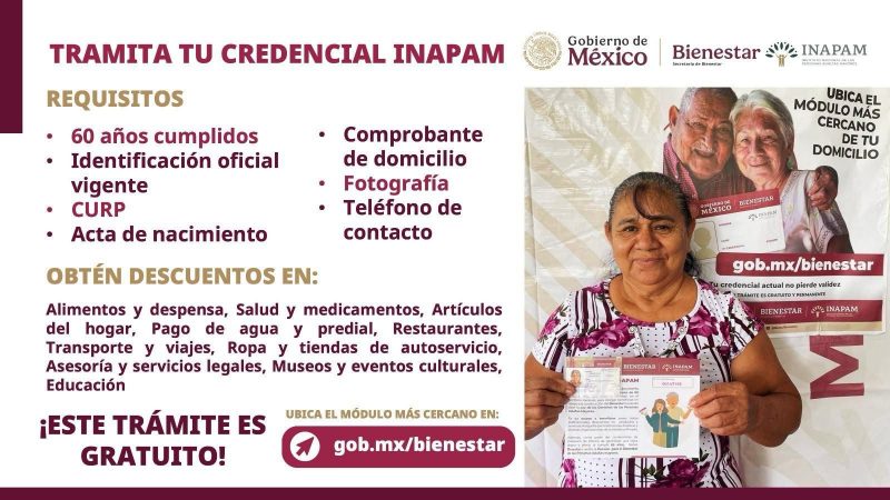 Además, esta credencial fortalece la inclusión social, la autonomía y el reconocimiento del papel activo de las personas mayores en la vida comunitaria.