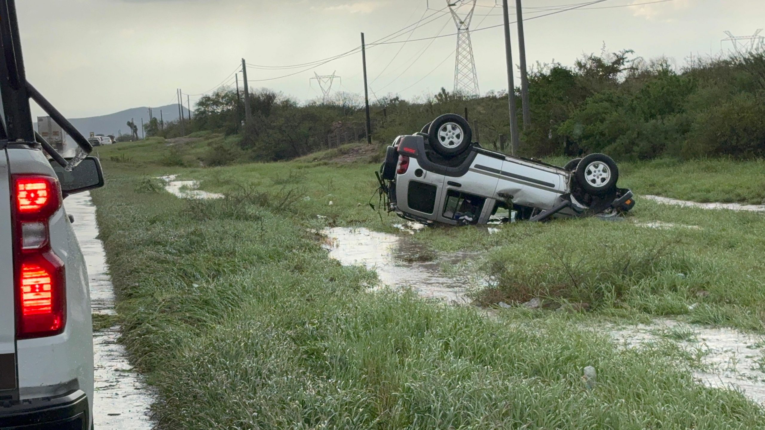 El conductor de una camioneta Jeep perdi贸 el control debido al exceso de velocidad y al pavimento mojado sobre la carretera libre Saltillo-Torre贸n, a la altura del kil贸metro 22.