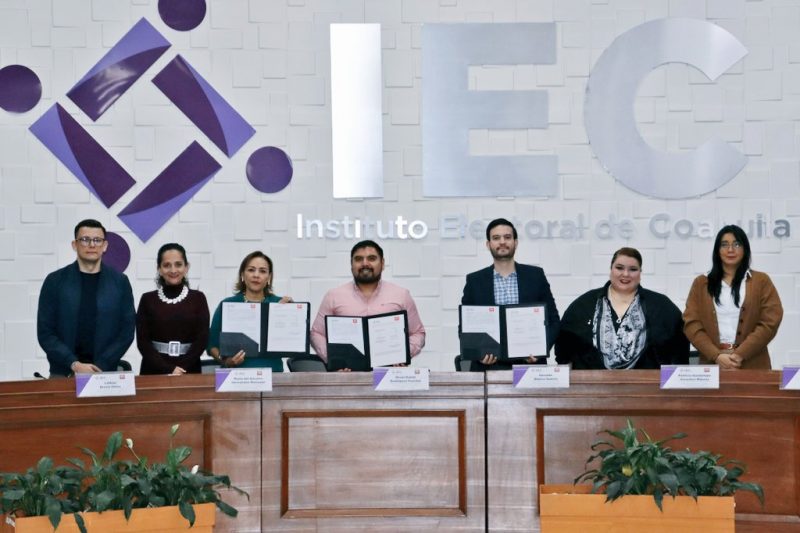 Por parte del IEC, el convenio fue suscrito por Óscar Daniel Rodríguez Fuentes, consejero presidente, y el secretario ejecutivo, Gerardo Blanco Guerra, mientras que por la Ibero Saltillo firmó su directora general, María del Socorro Hernández Manzano.