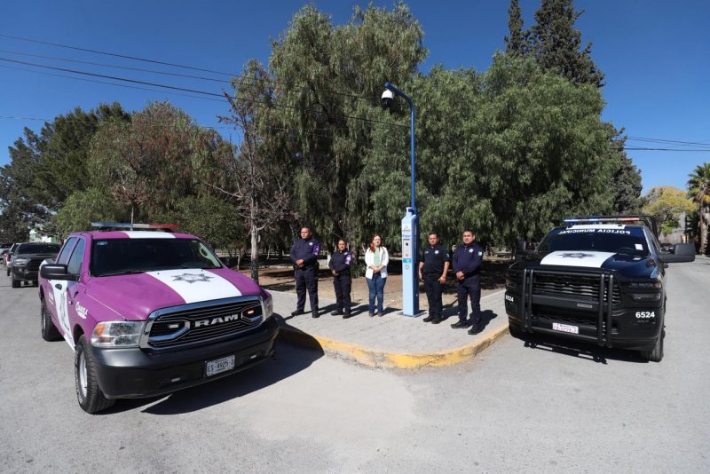 La alcaldesa Ana Karen Sánchez Flores encabezó la inauguración de cuatro estaciones de pánico, además de la integración de 27 nuevas cámaras al Centro de Control como parte del fortalecimiento permanente a la seguridad municipal en Arteaga, Coahuila.