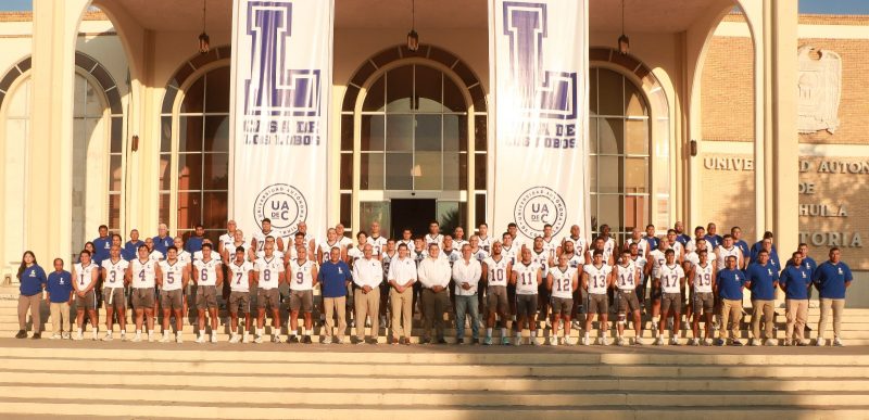 El equipo de Lobos de Fútbol Americano de la Universidad Autónoma de Coahuila se tomó la fotografía oficial ante el inicio de la temporada de la Conferencia Nacional de la Liga Mayor de la Organización Nacional Estudiantil de Futbol Americano 2025.
