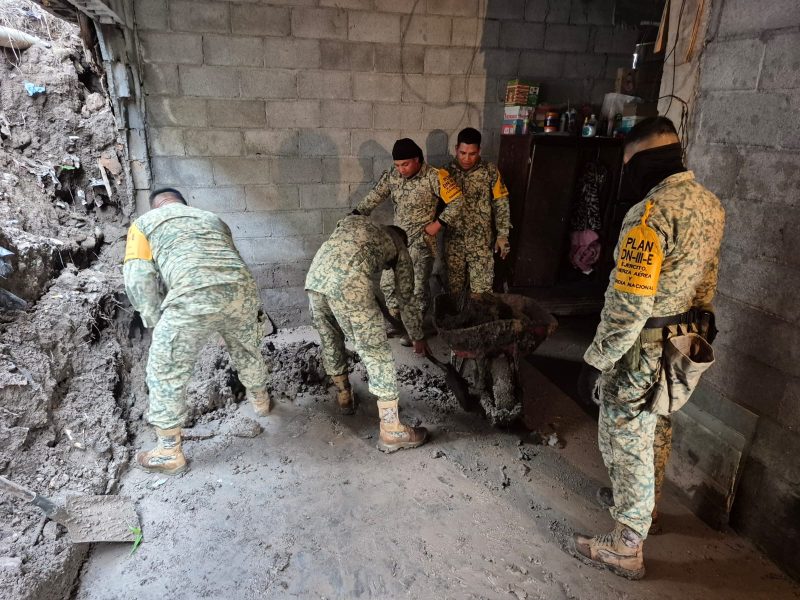 El equipo de Desarrollo Social, en coordinación con el Ejército Mexicano, y la dirección de Servicios Públicos, brindó apoyo a una familia en la colonia Valle Verde, quienes viven en las cercanías del arroyo “La Encantada”.