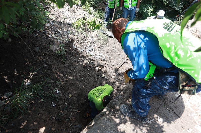 Al sur de la ciudad, brigadas de Aquí Andamos realizaron limpieza, retiro de basura y escombro de las alcantarillas del bulevar Otilio González, así como trabajos para destapar el paso del arroyo que cruza por debajo de esta vialidad, esto a la altura de la colonia Lomas del Pedregal.