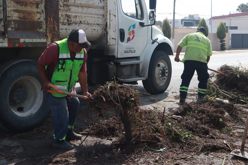 En este mismo sector, personal de Medio Ambiente y Desarrollo Sustentable de Saltillo, reforzó sus acciones de limpieza y retiro de desechos orgánicos, escombro y piedras que se encontraban acumuladas a un costado de la Carretera Los Valdez, en el tramo entre los bulevares Venustiano Carranza y José Musa de León.