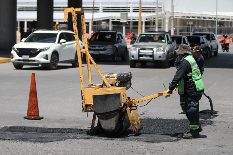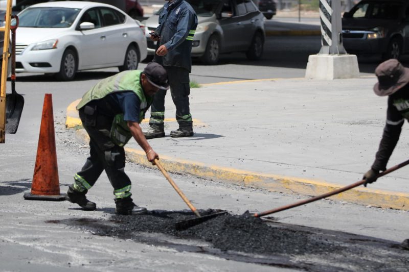 Se reportaron, además, trabajos similares de reparación de asfalto dañado en diversos puntos de la vialidad lateral del bulevar Fundadores, a la altura del fraccionamiento Mirasierra.