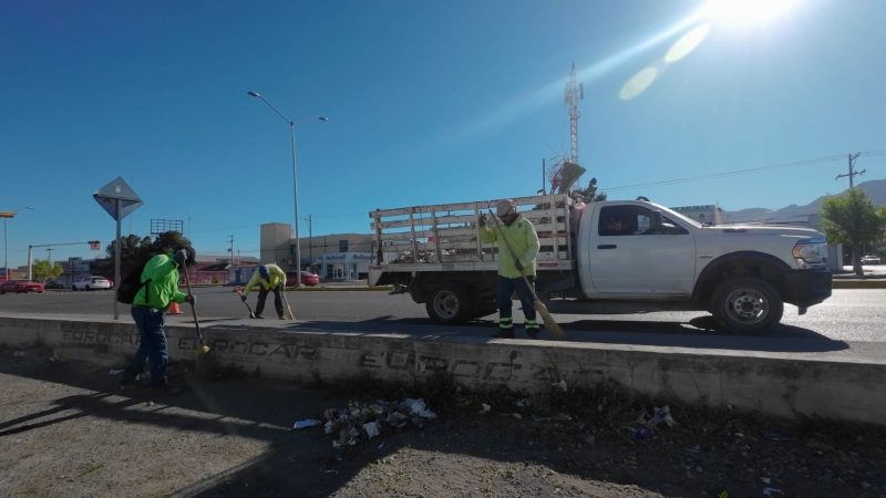 En atención a reportes de la ciudadanía a través del asistente virtual “Saltillo Fácil”, al 844-160-08-08, brigadas municipales atendieron con acciones de retiro de basura acumulada y deshierbe sobre el camellón central y laterales del bulevar Antonio Cárdenas.