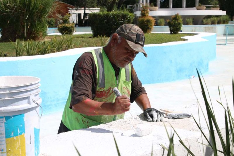 Personal de la Dirección de Medio Ambiente y Desarrollo Sustentable realizan la limpieza profunda, la eliminación de sedimentos acumulados, basura, y residuos orgánicos, así como el recubrimiento con aplicación de pintura para crear una superficie resistente.