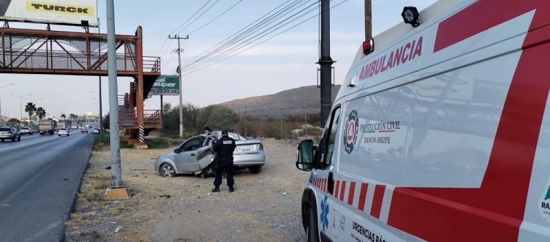 Una joven identificada como Susana Isabel, de 21 años, resultó lesionada luego de perder el control de su Chevrolet Aveo sobre la carretera libre Saltillo–Monterrey, a la altura de la empresa Atlantis.