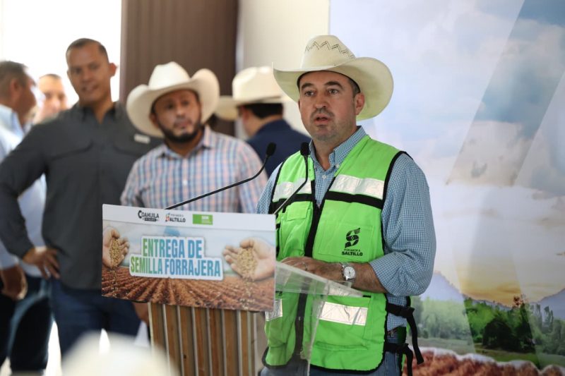 Saltillo, Coahuila de Zaragoza; 23 de septiembre de 2025.- Al iniciar la segunda entrega de semilla forrajera, el alcalde Javier Díaz González refrendó su compromiso para fortalecer al campo saltillense en equipo con el gobernador Manolo Jiménez Salinas.