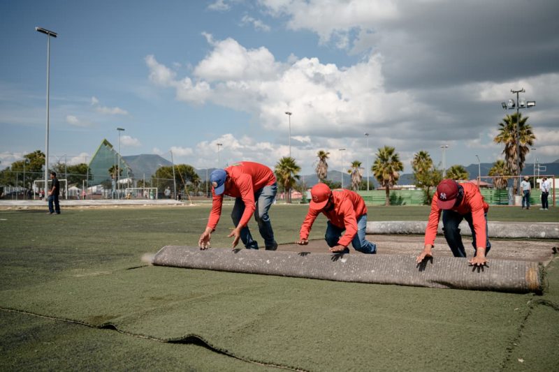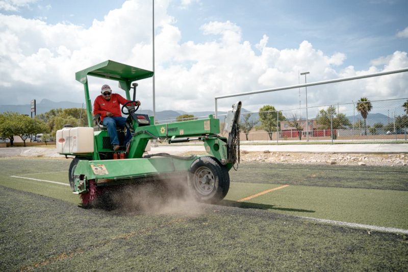 Antonio Nerio Maltos, director de Infraestructura y Obra Pública, informó que la rehabilitación de la cancha de futbol 11 incluye el retiro del pasto existente para nivelar y construir una dala de concreto perimetral para volver a colocar pasto sintético.