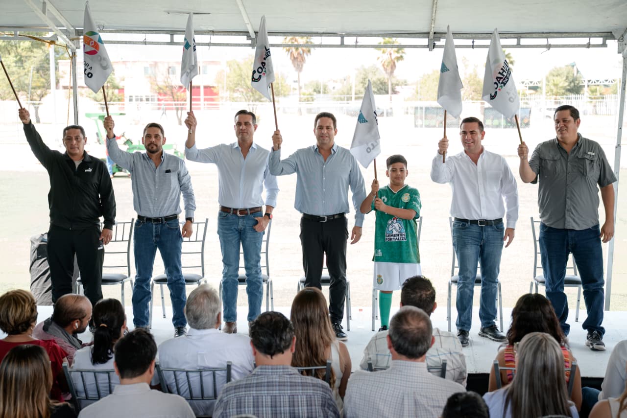 Javier Díaz González señaló que la rehabilitación de la cancha de fútbol 11 en la unidad deportiva Carlos R. González es una manera de contribuir para seguir mejorando la formación de las niñas y niños saltillenses.
