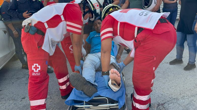 Paramédicos de Cruz Roja Saltillo trasladaron al motociclista a las instalaciones de la clínica 70 del IMSS ya que presentó una probable fractura en una pierna.