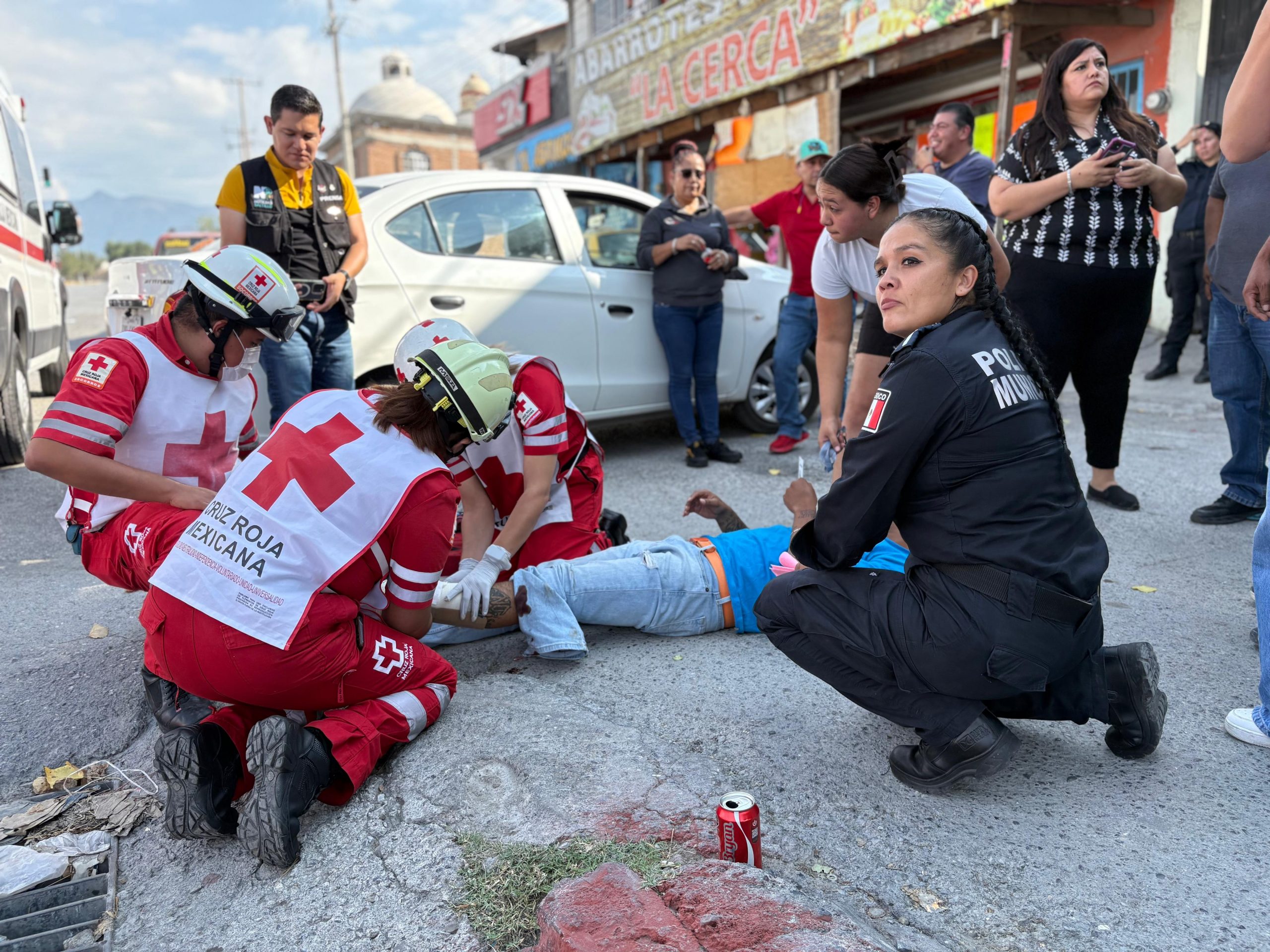 Paramédicos de Cruz Roja Saltillo trasladaron al motociclista a las instalaciones de la clínica 70 del IMSS ya que presentó una probable fractura en una pierna.