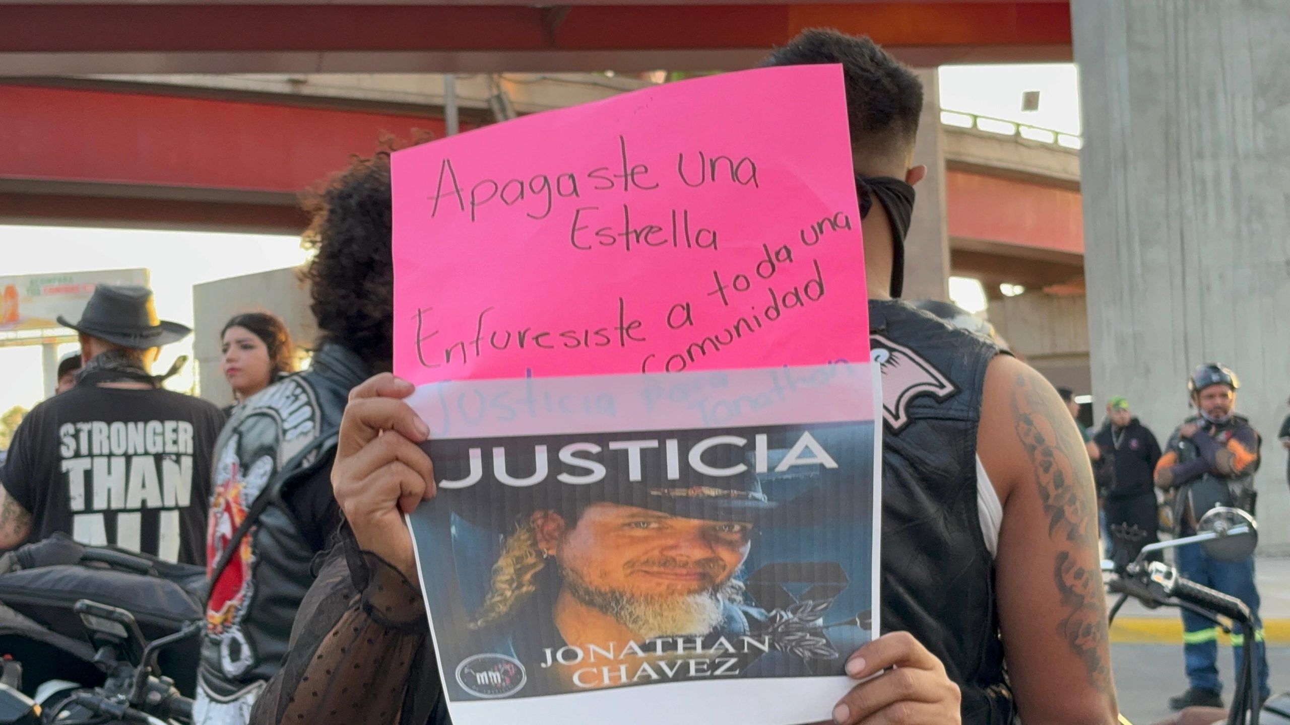 Este viernes por la tarde, decenas de motociclistas se dieron cita en el distribuidor vial El Sarape para llevar a cabo una manifestación pacífica en demanda de justicia para Jonathan Chávez, quien lamentablemente perdió la vida tras ser arrollado por el conductor de una camioneta Jeep, el cual huyó del lugar sin brindar auxilio y permanece prófugo.