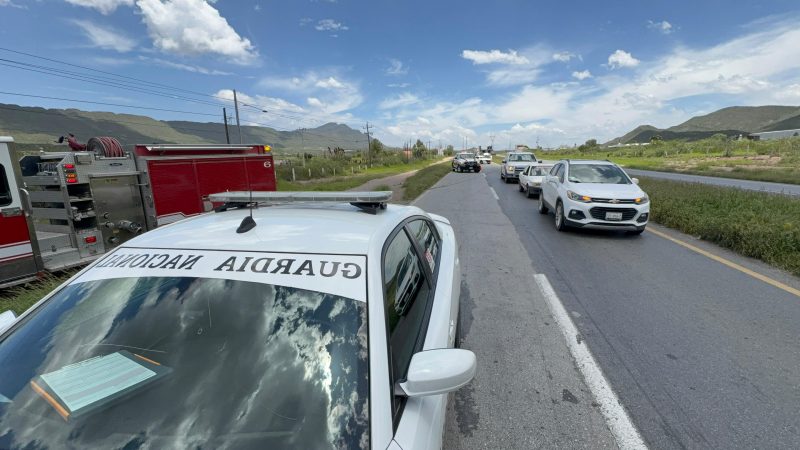 Elementos de la Guardia Nacional en estos momentos mantienen cerrado el carril con dirección a Torreón.