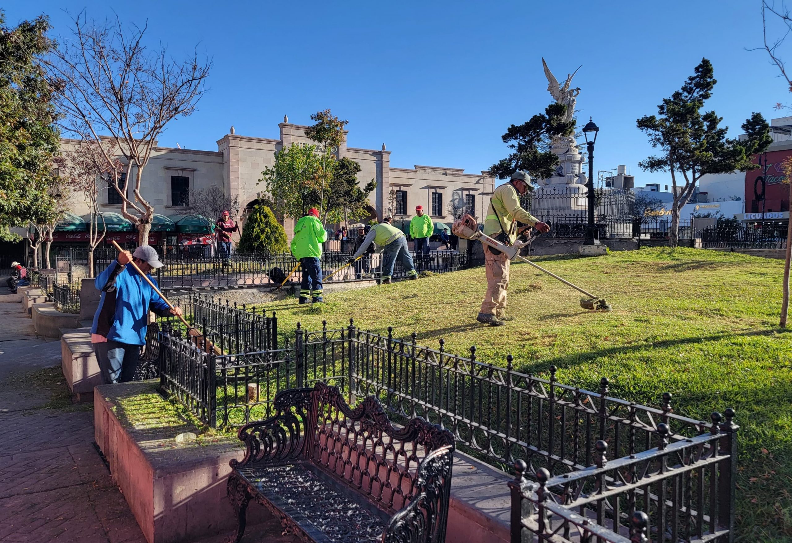 Saltillo, Coahuila de Zaragoza; 19 de diciembre de 2025.- Con el propósito de mantener en óptimas condiciones los espacios públicos y fortalecer la imagen urbana del primer cuadro de la ciudad, el alcalde Javier Díaz González instruyó realizar trabajos de deshierbe y limpieza profunda en la plaza pública Manuel Acuña, ubicada en la Zona Centro de Saltillo.