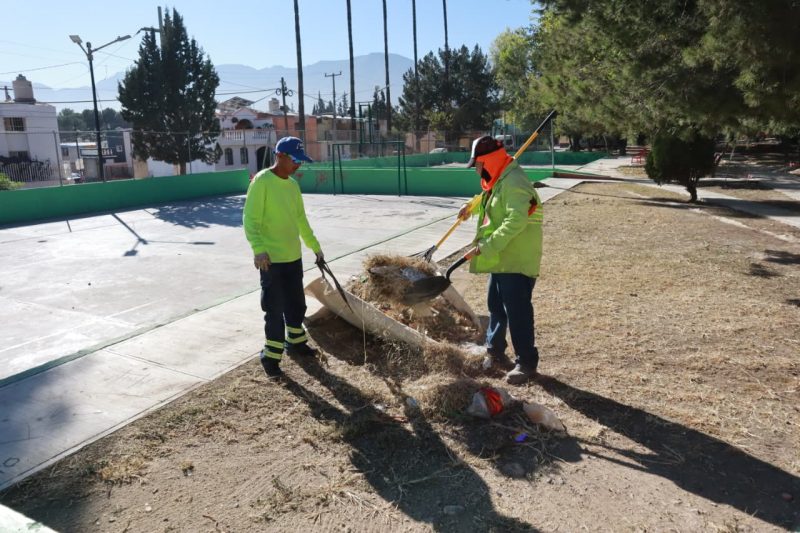 Cuadrillas municipales atendieron el reporte ciudadano a través del asistente virtual “Saltillo Fácil”, al 844-160-08-08, y realizaron labores de limpieza general y deshierbe en las áreas verdes de la plaza pública de la colonia Zapalinamé.