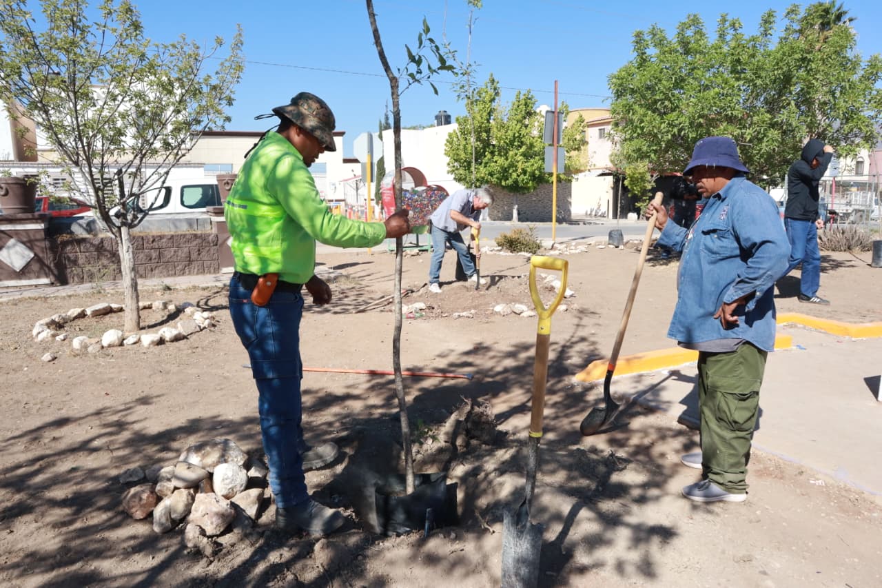 En este punto, personal de la Dirección de Medio Ambiente y Desarrollo Sustentable sembraron 30 árboles de las especies trueno y fresno, con el objetivo de embellecer estas áreas verdes, fomentar la biodiversidad en el lugar, así como generar un entorno natural más sano y armónico para las familias de este sector de la ciudad.