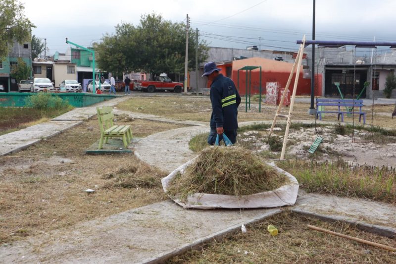 Además, al interior del fraccionamiento Federico Berrueto Ramón, brigadas municipales limpiaron y deshierbaron la plaza pública y cancha deportiva ubicada sobre la calle Moisés Sáenz.