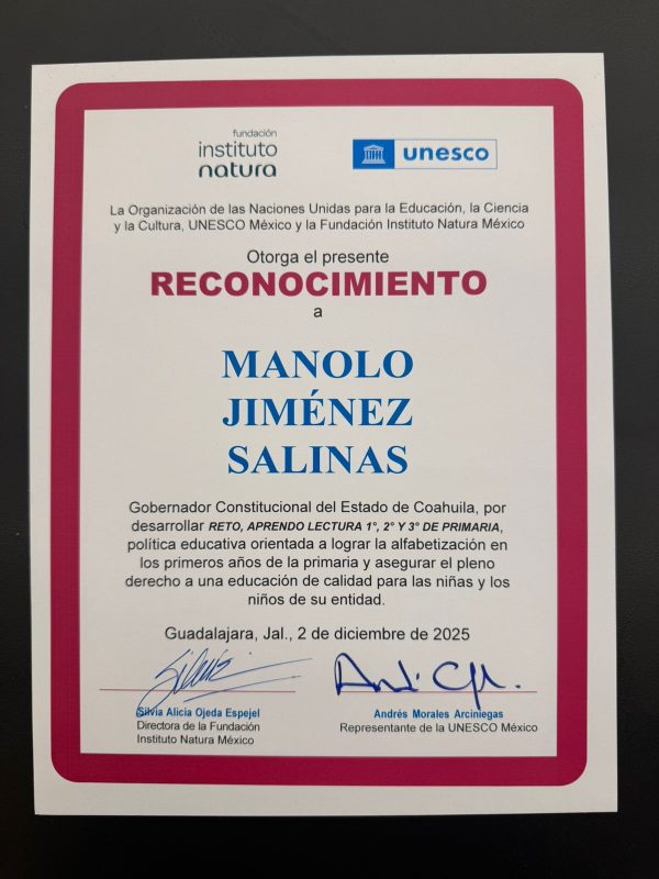 Con este reconocimiento dichas instituciones valoraron la continuidad, voluntad política y capacidad técnica de docentes, directivos y aliados que han permitido consolidar modelos de alfabetización temprana en Coahuila, posicionando al Estado como referente nacional en la materia y demostrando que cuando las estrategias se sostienen en el tiempo, los resultados pueden escalar de manera significativa.